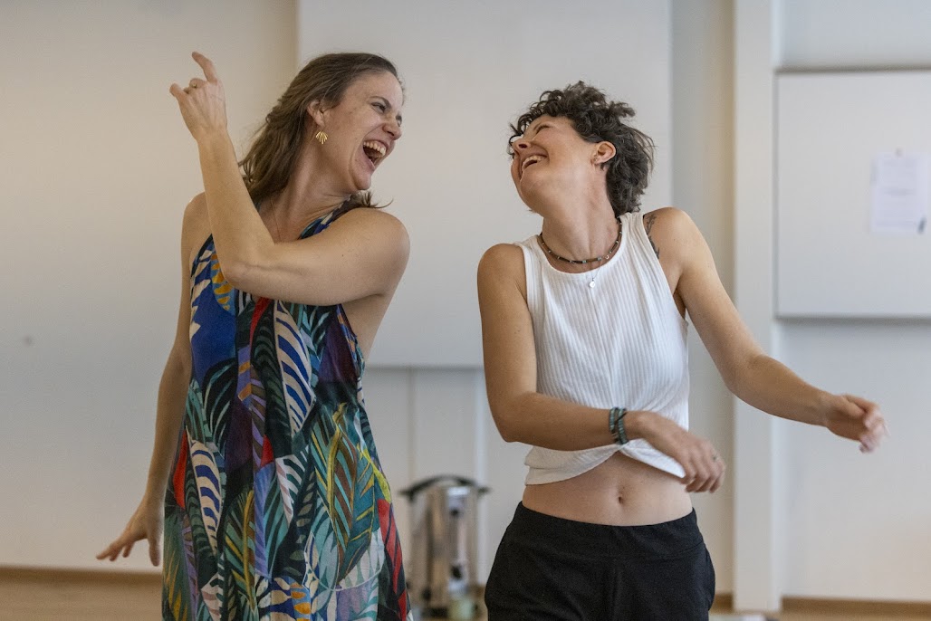 Céline (à gauche), organisatrice d'explorations sensorielles et consultante en relation d'aide, est une femme joueuse et sensuelle.